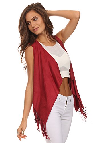 -. Title : MeshMe Womens Courtney - Short Faux Suede Fringed Vest
