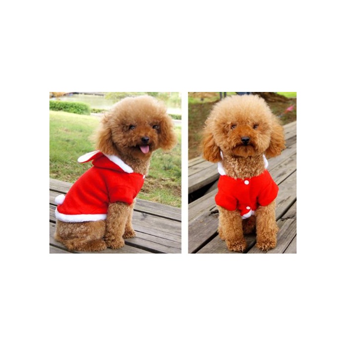 《하피네스마이루》 것임 이산타 씨!【 애견용 크리스마스 코스튬 적흰색 】【 전4 사이즈 】 토끼 봐 보 바니 산타 파커 트레이너 버튼 의상 애완동물 개와 고양이 파티 이벤트 선물