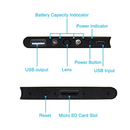Built-in 6000mAH battery, up to 15 hours continuous recording. Come with a USB output(5V/1A) to power your other phone or other device which power by USB 5V.