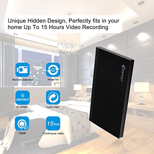 Corprit Full HD 1080P Hidden Camera Spy Nanny Cam 6000mAh power bank, 15 hours continuous Video Recording,Loop Record,Motion Detection ( NO WIFI function)