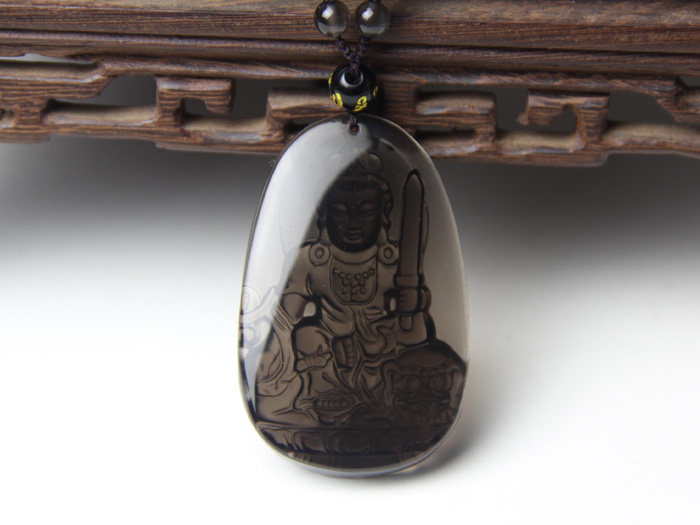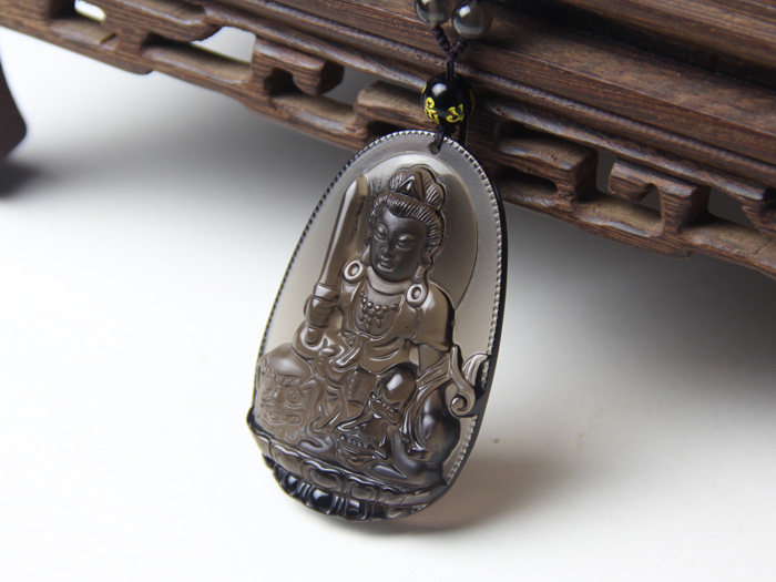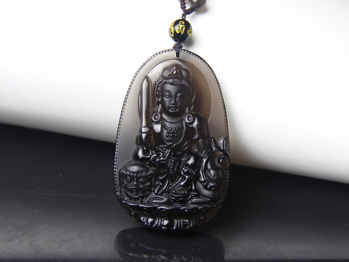 开光 天然冰种黑曜石本命佛挂件 文殊菩萨 生肖兔守护神吊坠