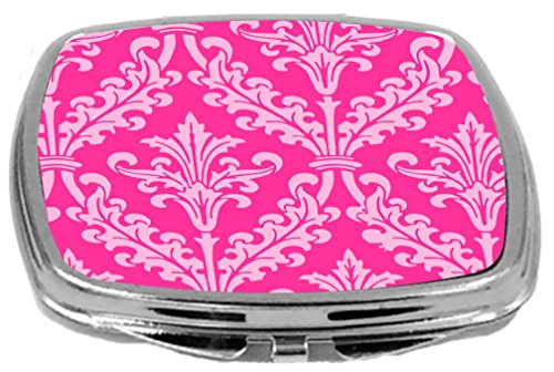 Rikki Knight Compact Mirror, Hot Pink Damask