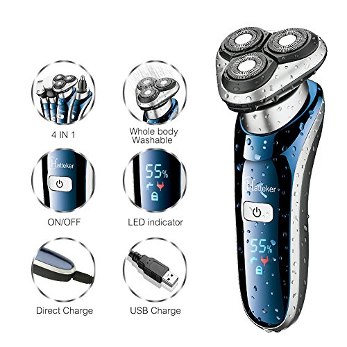 Hatteker Professional Electric Shaver Razor For Men 4 in 1 Beard Trimmer Wet Dry Rotary Shaver Cordless Hair Trimmer Nose Hair Trimmer Facial Cleaning...