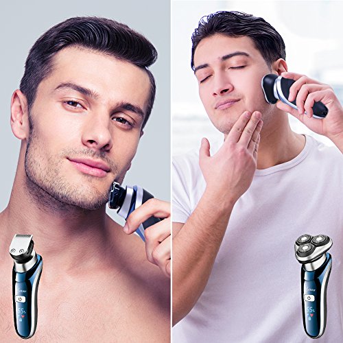 - 【SMOOTH AND CLOSE SHAVE/USE WET OR DRY 】 With 4-direction floating heads, the 3D rotary shaver automatically adapts to the contours of the face, neck and even the jaw, so provides a comfortable and close shave.IPX7 100% waterproof, recommend to use with gel or foam
