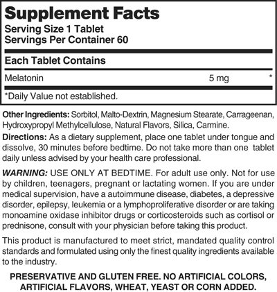 -. Feature : 5 mg melatonin per tablet / Guaranteed release / Gluten free