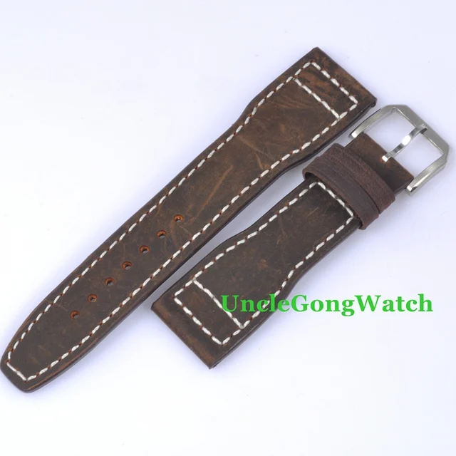 | [해외] 시계 부품, 22 미리메터 브라운 가죽 브라운 스티치 스트랩, 시계 밴드 파르 니스 시계 핀 버클 SP07 |