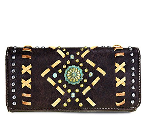 Studio : Western Fashion Publisher : Western Fashion Binding : Apparel Product Description Montana West® Geo Studs Leather Stitch Tri-Fold Wristlet Wallet - Coffee