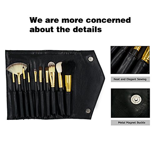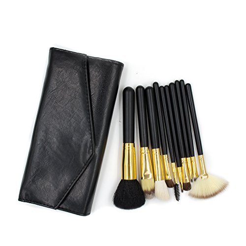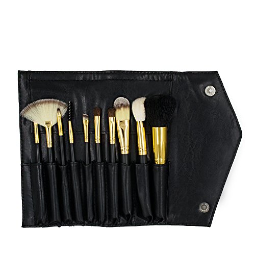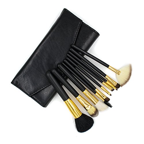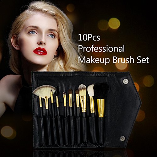 10 Piece Professional Makeup Brush Set Wood Handle Concealer Eye Face Liquid Powder Cream Cosmetics Lip Brush Tool Brushes Kit With Black...