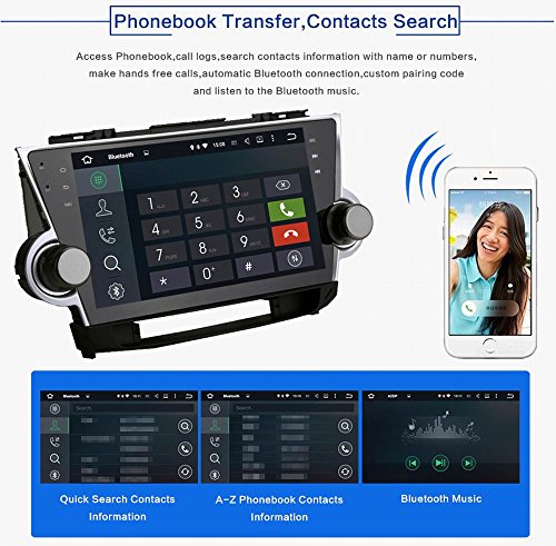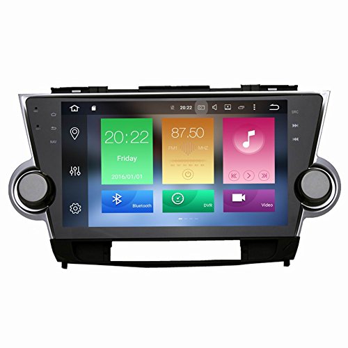 SYGAV Android 6.0 Marshmallow Car Stereo Video Player for Toyota Highlander 2009-2012 Quad Core 10.2 Inch In-dash 2 Din 1024x600 GPS Nav Sat with Wifi Bluetooth Radio