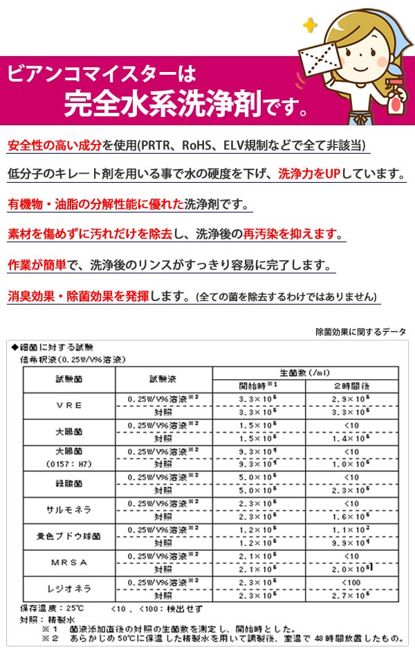 | 仕様 | 水系有機物分解洗浄剤(アルカリ性) |