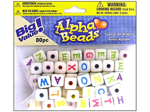 - This 5x4 inch package contains 80 alphabet beads in an assortment of colors