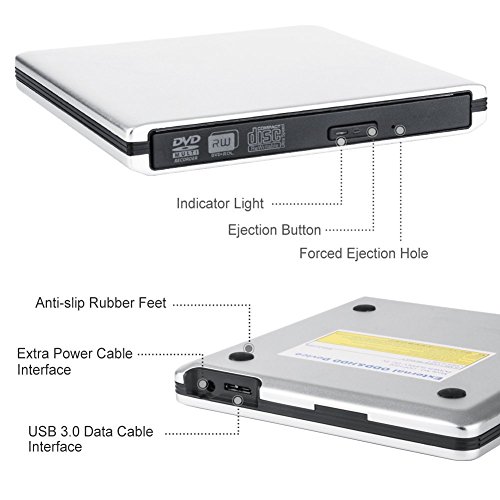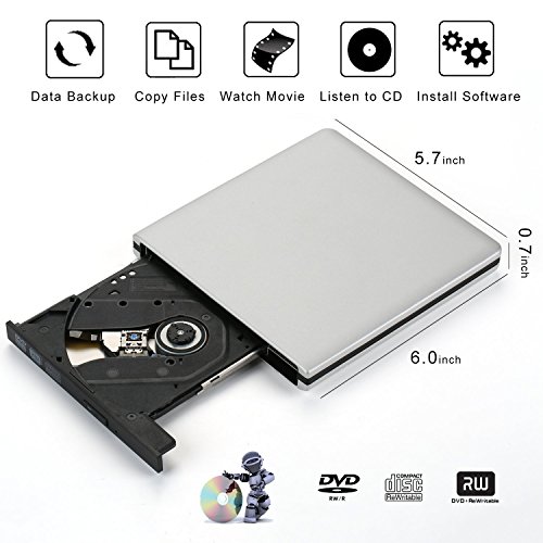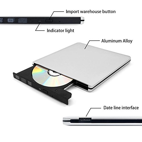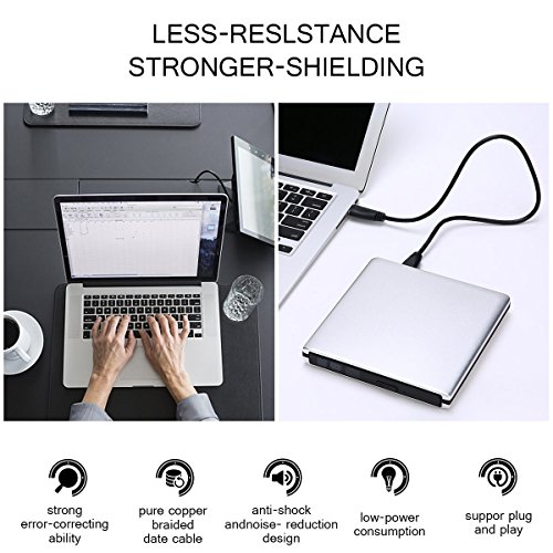 【Aluminum Alloy Housing】: The portable cd player dvd drive Made of Aluminum Alloy housing,superior to other external cd drive windows 10 made of plastic housing,Sturdier and Strong resistance,Shock-Proof,give the best protection to internal components.