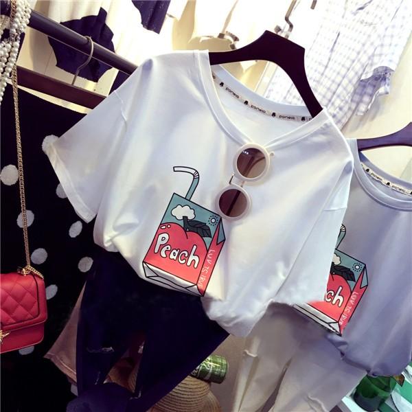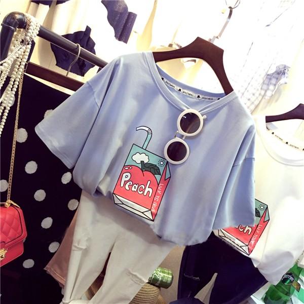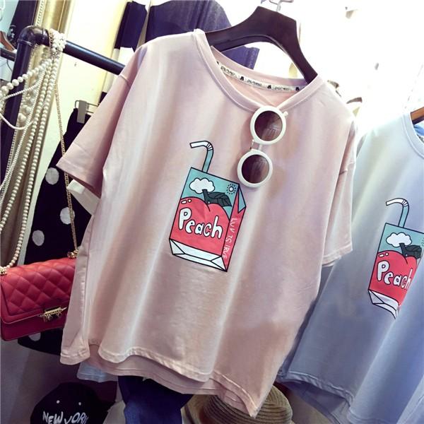 peachと書かれたパックジュースの絵がとってもキュートなTシャツ♪パステルカラーもとってもキュート☆【カラー】ホワイト、ピンク、ブルー【サイズ】胸囲102/肩幅50/袖丈17/着丈60(cm)※製品により多少の誤差が生じる場合がございます。【素材】綿・ポリエステル 【ご使用上の注意】着用に問題のない製法のほつれ、商品の性格上、開封された商品・一度でも着用されました商品の返品・交換は一切お受け致しません。イメージと違う、サイズが合わない等の理由での返品は一切受け付けておりません。購入後のサイズ交換は対応しておりません。生産終了後すぐ発送しているため匂いがある場合がございます。ご了承ください。【生産国】made in china※商品はご注文を頂いてから2週間前後の到着となります。