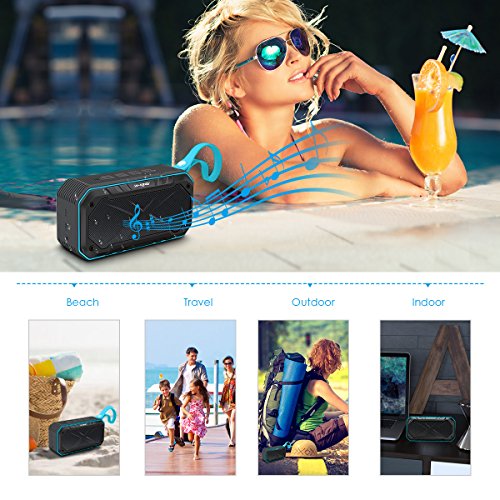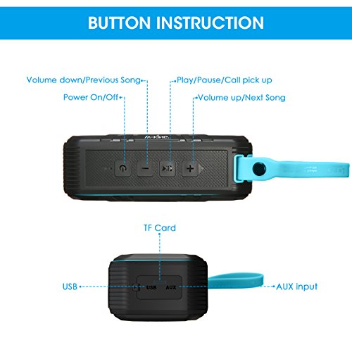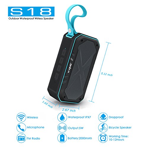 【IPX7 Wasserdichter Lautsprecher】 Wasserdichte mit IPX7. Mann kann den Box einfach ins Wasser werfen, so dass kann man die Musik in Badezimmer oder bei Schwimmen horen.