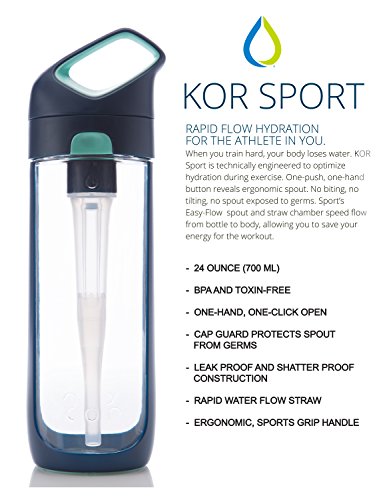 -. Binding : Kitchen -. Brand : KOR Water -. Color : Aqua Splash -. EAN : 0856399003494 -. Feature : Threadless spout for inserting ice / Minimizes splashing / Shielded mouthpiece to keep it free of germs and dirt / Variety of colors / Perfect for on the go -. Label : KOR Water -. Manufacturer : KOR Water -. Model : 17011 -. MPN : FBA32XHC4X -. PackageQuantity : 1 -. PartNumber : FBA32XHC4X -. ProductGroup : Kitchen -. ProductTypeName : KITCHEN -. Publisher : KOR Water -. Studio : KOR Water -. Title : KOR 700 mL Sport Water Bottle Aqua Splash -. UPC : 856399003494