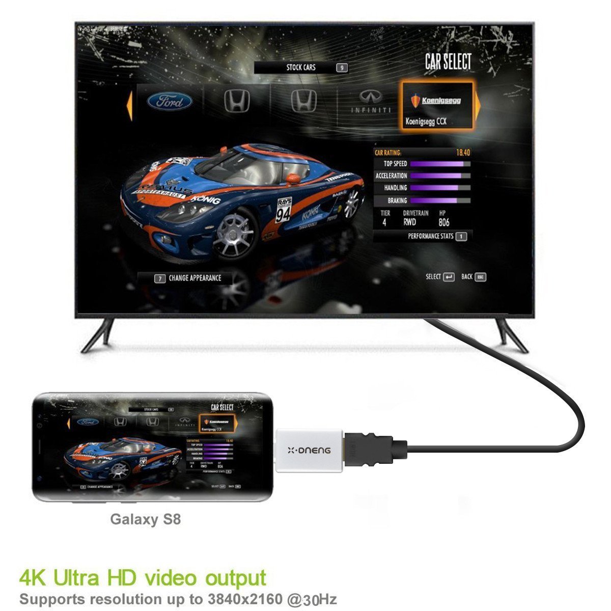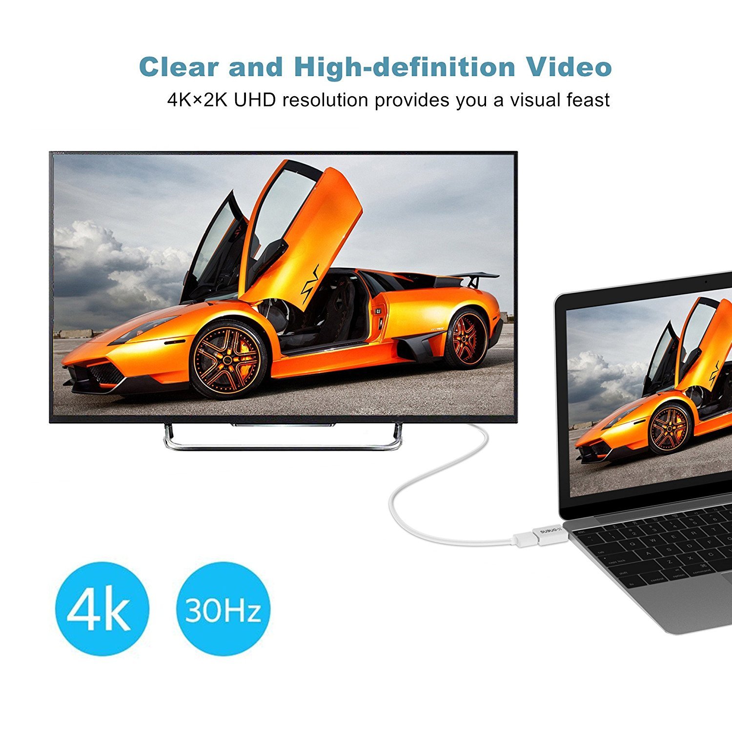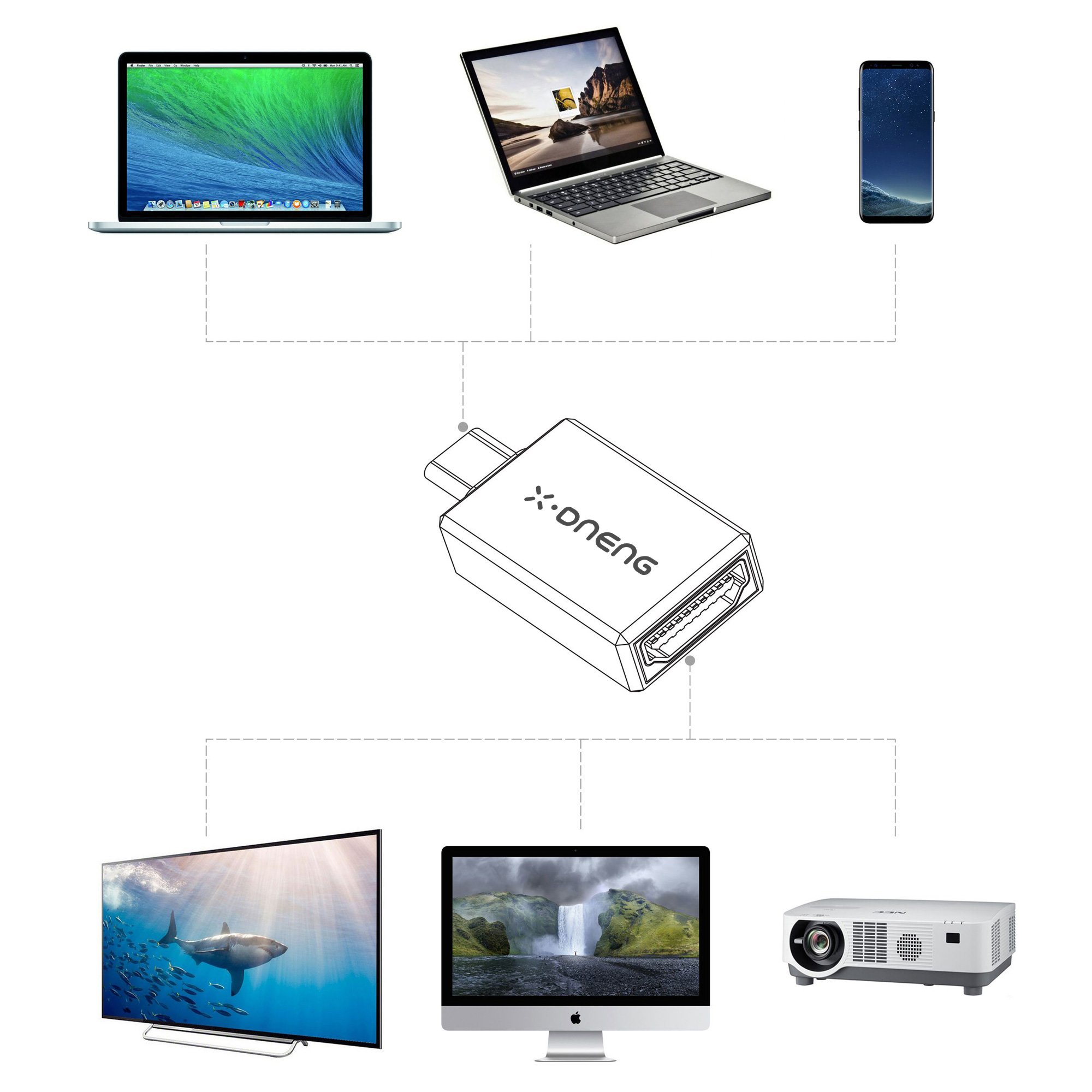 This product can connect the mobile phone and the PC to the HDMI monitor with the high resolution of 4 K HDMI output terminal.