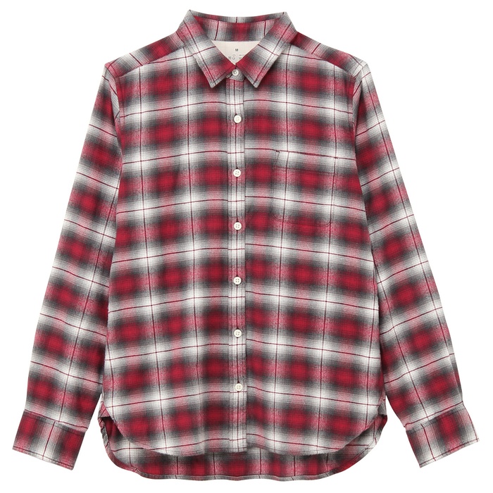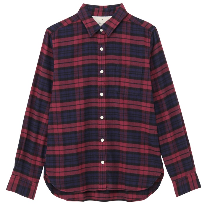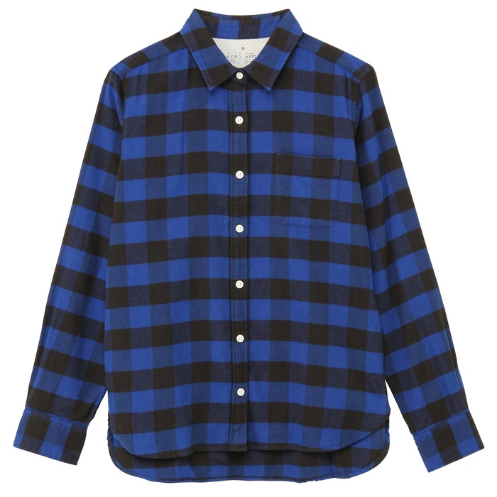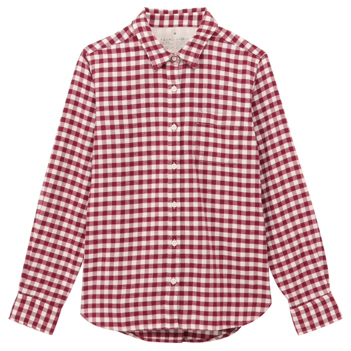 Muji 오거닉 코튼 flannel 체크 셔츠 부인S검정×체크SALE