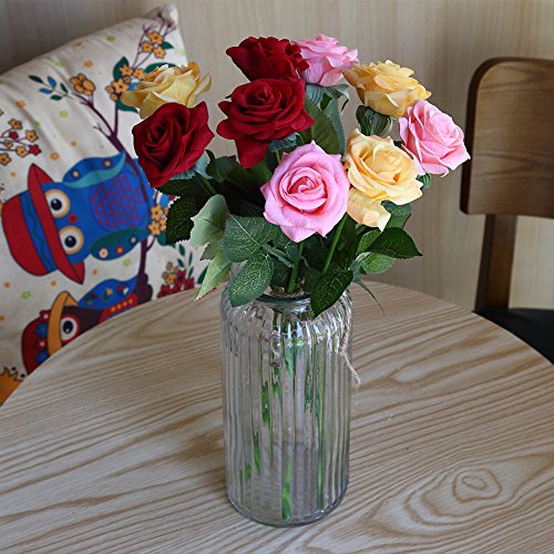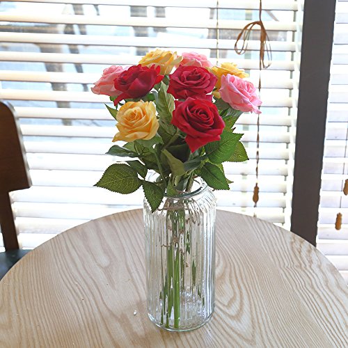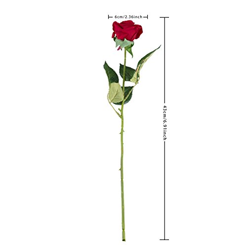 ADolinGo Artificial Roses Flowers Real Touch Fake Silk Flowers 1 Heads Wedding Party Decor (Red)