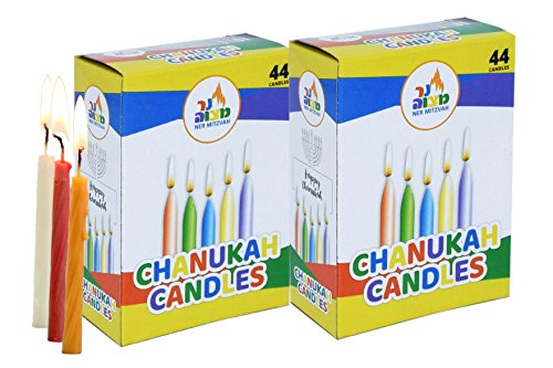 2-Pack Colorful Chanukah Candles - Standard Size Fits Most Menorahs - Premium Quality Wax - Assorted Colors - 2 x 44 Count For All 8 Nights of Hanukkah - by Ner Mitzvah
