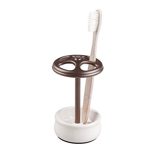 InterDesign Ashley Toothbrush Holder Stand for Bathroom Vanity Countertops - Ivory/Bronze