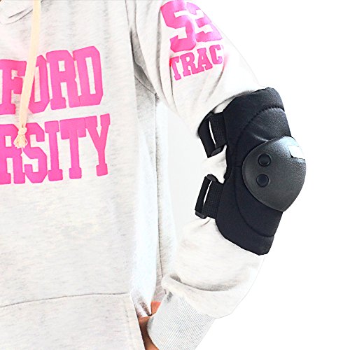 -. Feature : Made of durable, soft EVA padded material with tough plastic plates / Package includes: 1 Pair Elbows Guards + 1 Pair Knee Guards / Multiple adjustable elastic straps and Velcro closures for secure fit for various knee girths / Great for Motorcycle motorbike inline skating riding bikes balance scooters hoverboard;and many other outdoor sports.