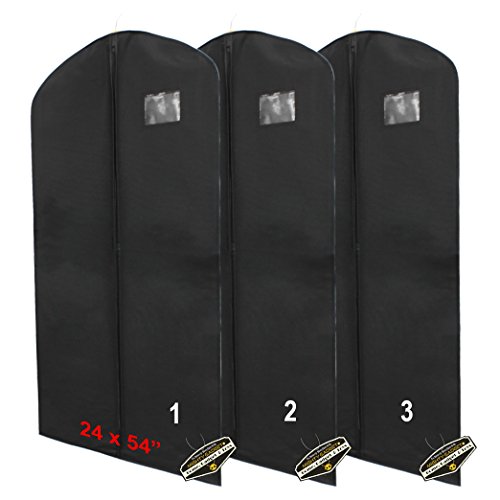 -. Title : Mighty Gadget (R) 3 Pack of Non-Woven Breathable Men Women Dress Suits Coats Black Garment Bag 24” x 54”