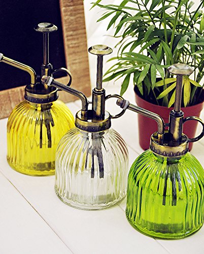 MEOLY Vintage Style Clear Glass Water Spray Bottle / Decorative Plant Mister with Top Pump (Clear)