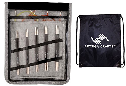 Bundle includes 1 Knitter's Pride Karbonz Starter Interchangeable Long Tip Knitting Needle Set with 1 Artsiga Crafts Project Bag 110601