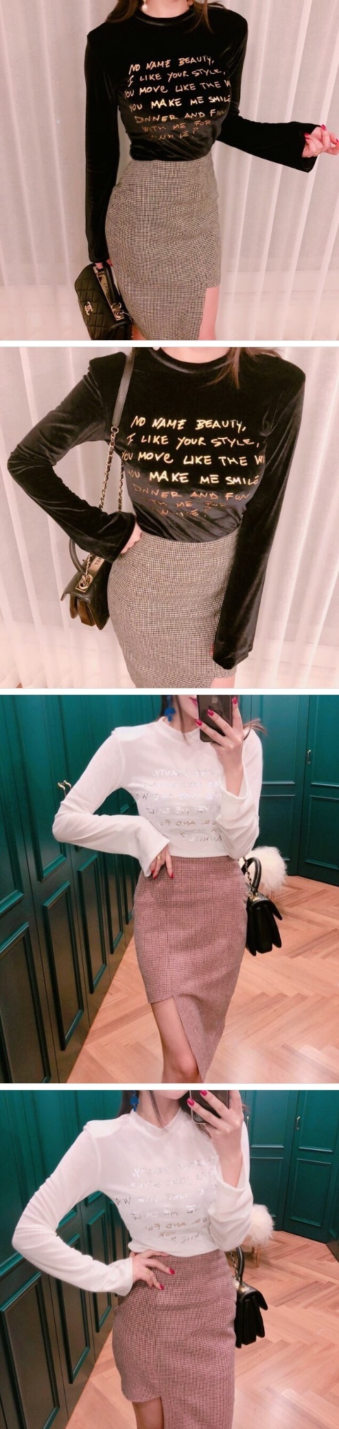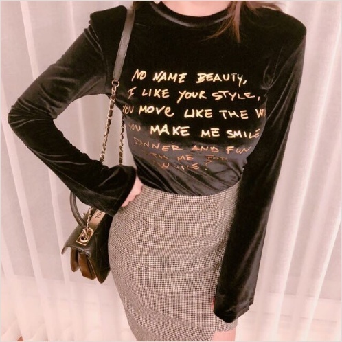 Women`s Velvet T-shirts with Shoulder Pads Black Ivory