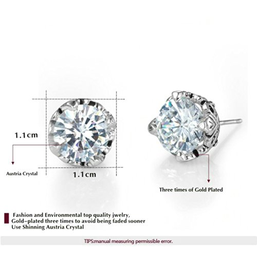 - Feature : Beautifully crafted crystal shining with grace and beauty. The base is 18k white gold plated. / A perfect accessory to your outfit or as an appropriate gift used in wedding and engagement party or other occasions. / The small stud earring is 0.4'' in diameter. / Shipped out in an exquisite jewelry gift box. Delivery time 7-15 days. / One year warranty to ensure you a perfect shopping experience.