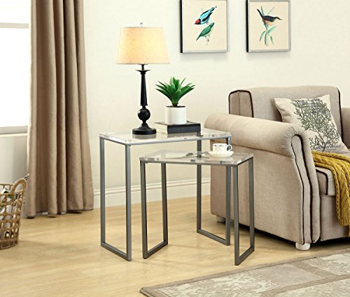 -. Binding : Kitchen -. Brand : Treasure Trove Accents -. EAN : 0884904172083 -. Feature : Acrylic & metal / Set of two rectangular tables / Clear Acrylic / Pewter powder-coated metal / Acrylic 1/2" thick tops -. Label : Set of Two Nesting Tables -. Manufacturer : Set of Two Nesting Tables -. Model : 17208 -. MPN : 17208 -. NumberOfItems : 20 -. PackageQuantity : 1 -. PartNumber : 17208 -. ProductGroup : Furniture -. ProductTypeName : HOME_FURNITURE_AND_DECOR -. Publisher : Set of Two Nesting Tables -. Studio : Set of Two Nesting Tables -. Title : Treasure Trove Accents 17208 Set of Two Nesting Tables Not Applicable -. UPC : 884904172083