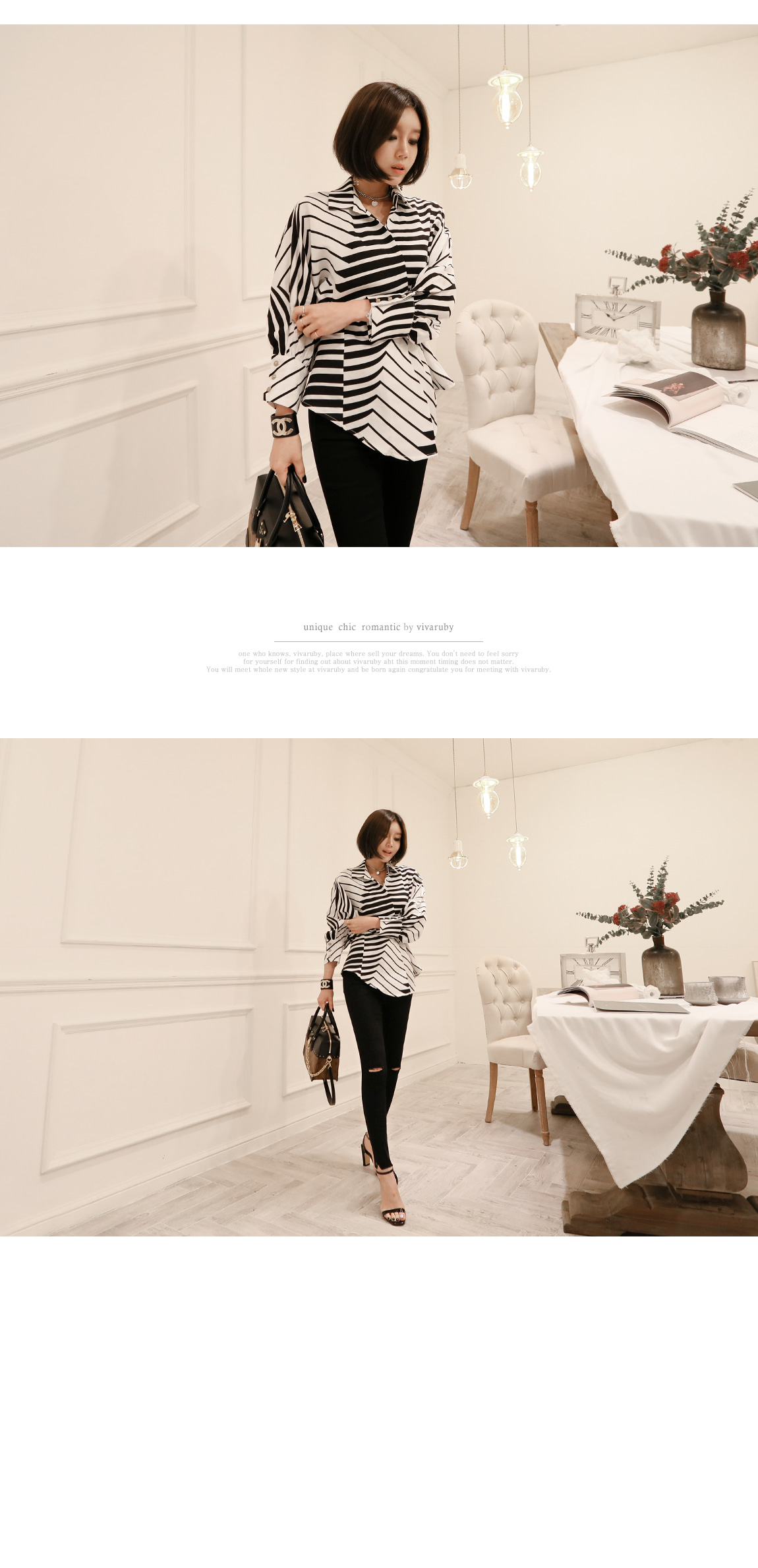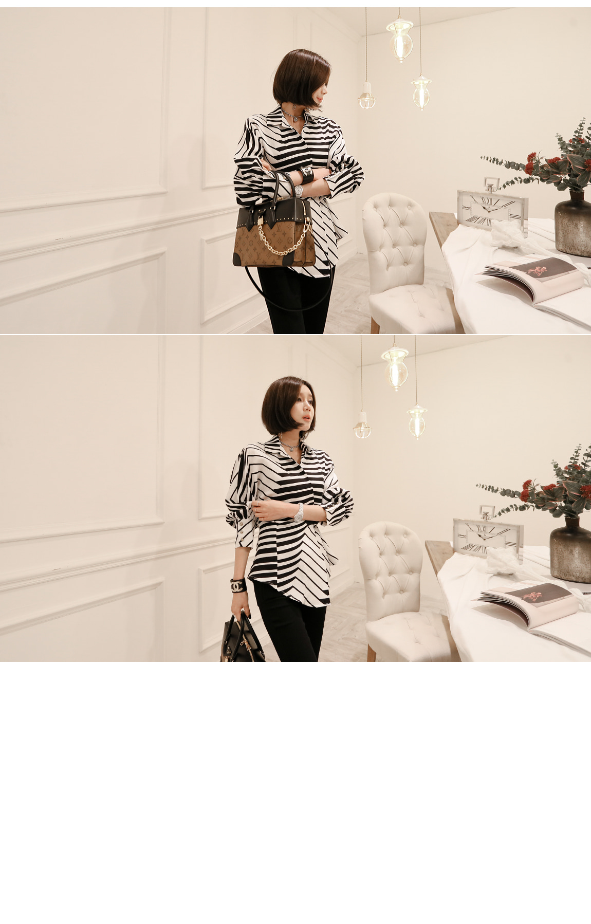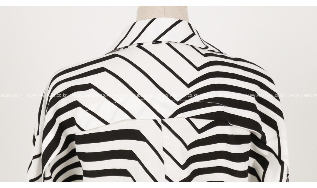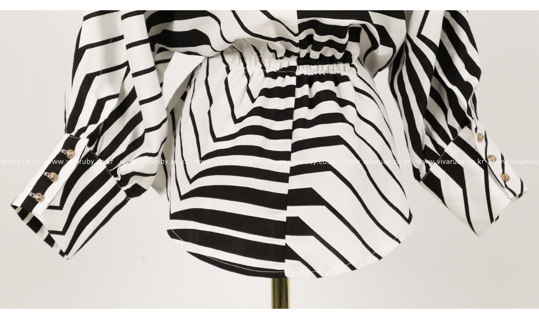 幾何学的なパターンが魅力的なデザインのブラウスです