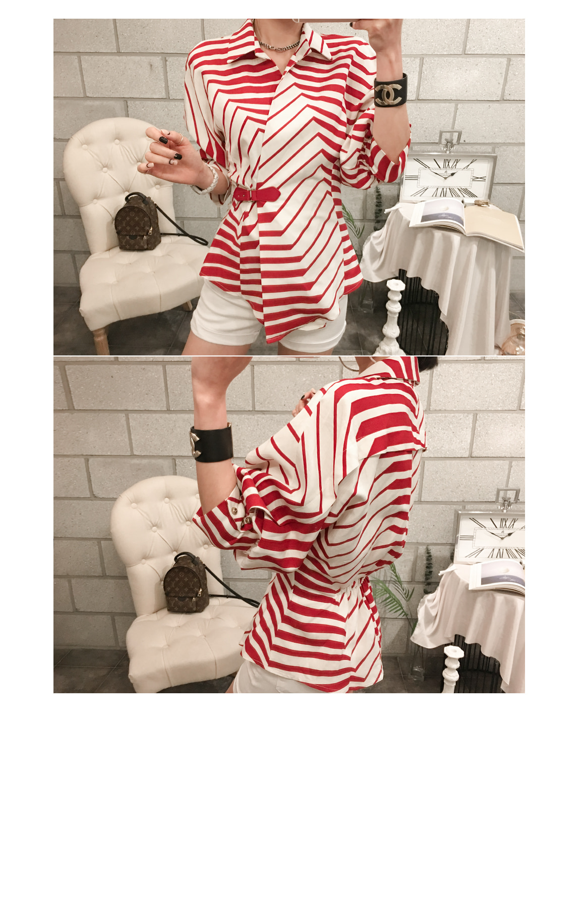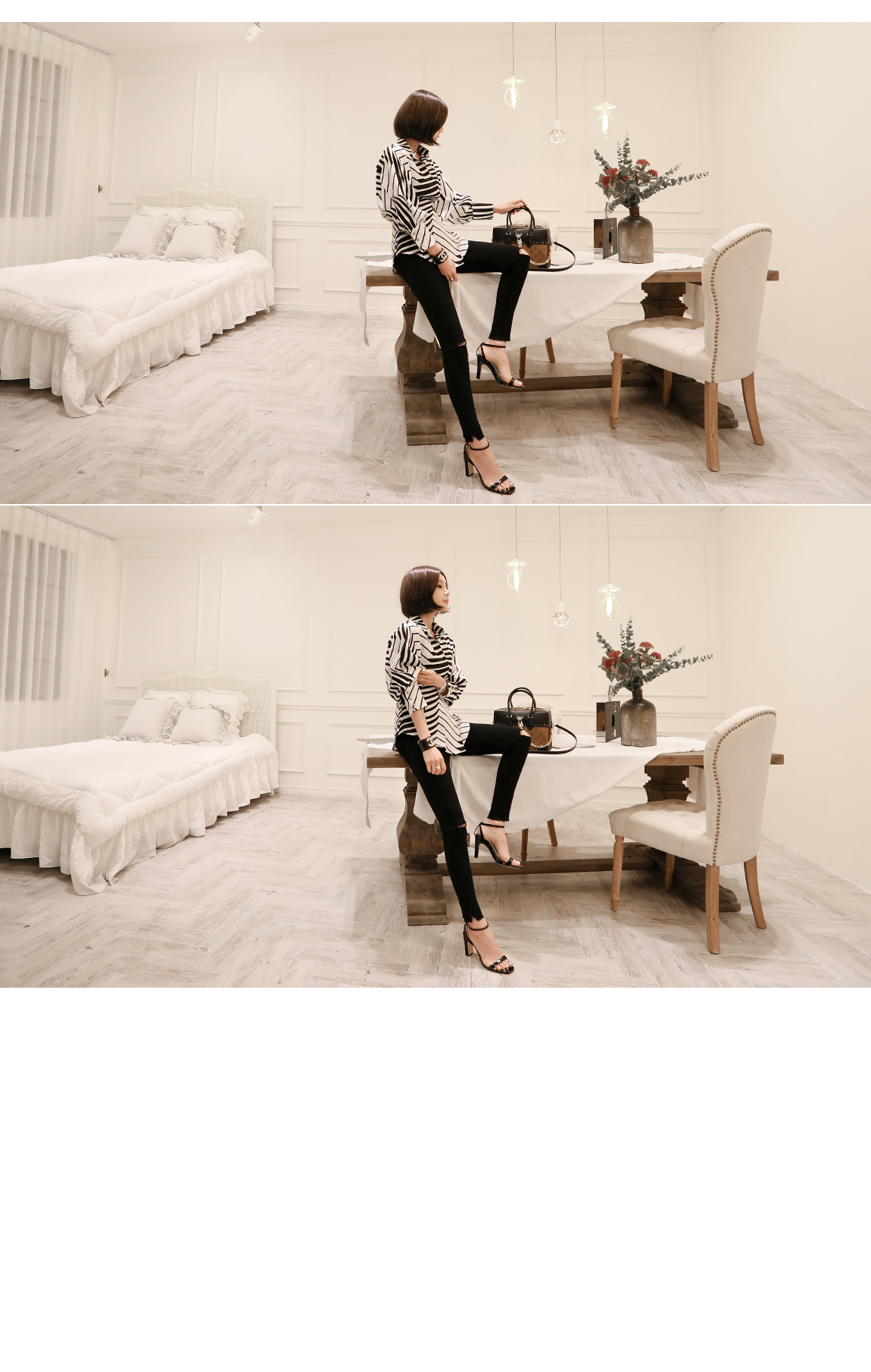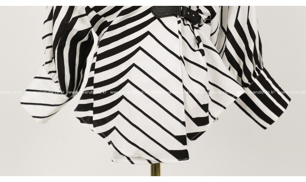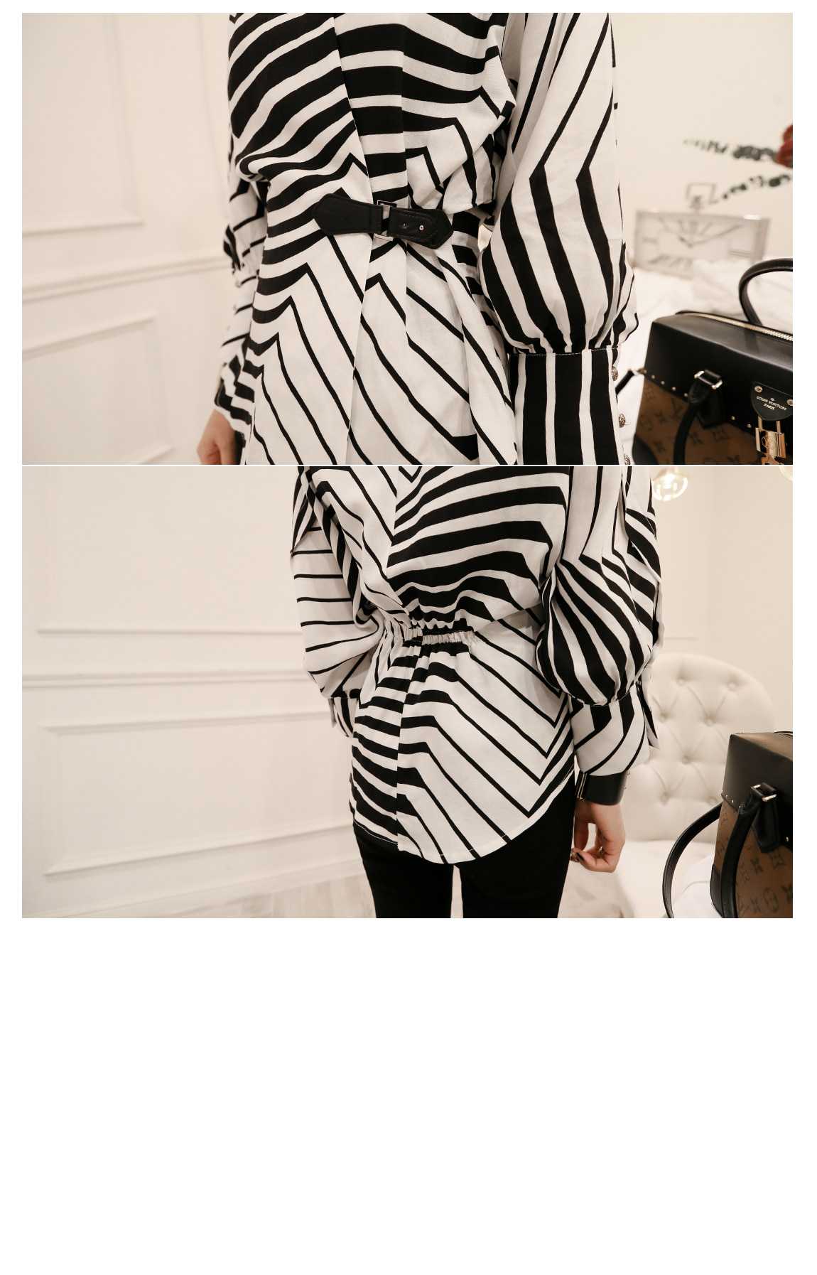 幾何学的なパターンが魅力的なデザインのブラウスです
