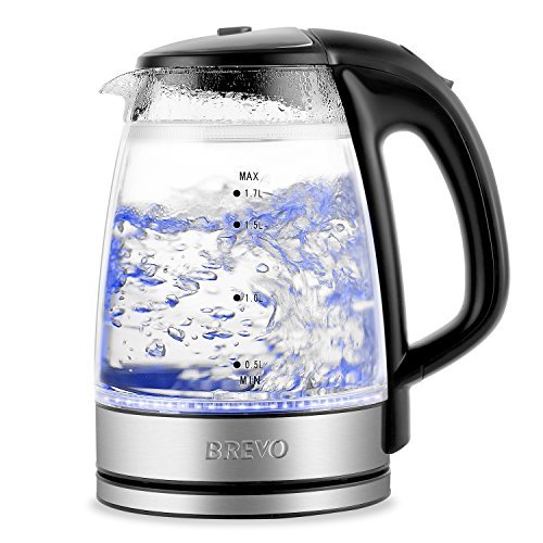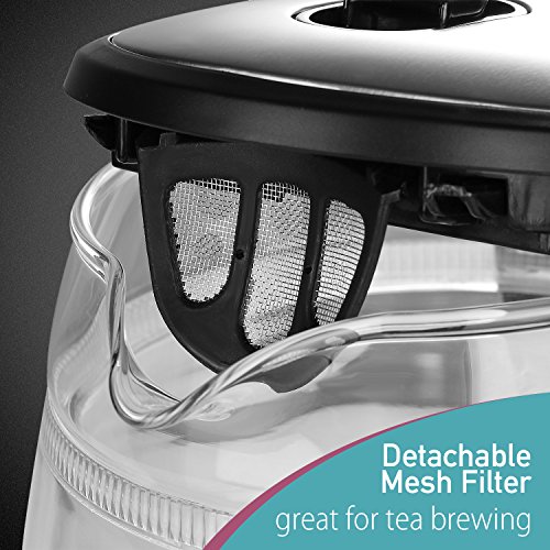 【QUICK HEATING】: With 1.7 Liter large capacity, the kettle heats up and boils rapidly in few minutes up to 1500W, saving you time making a cup of hot tea or brewed coffee.