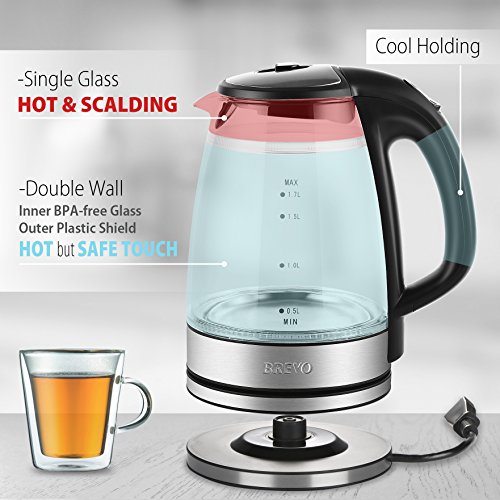 【SAFE BOILING】: The double-walled "Glass+Plastic Shield" design is engineered to protect you from harmful burns. The outer plastic layer ensures a cool touch and anti-collision to allow for worry-free handling.