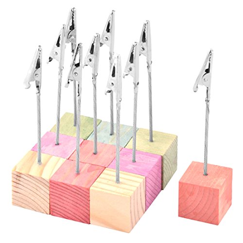 uxcell Wooden Household Cube Note Photo Picture Card Paper Memo Clip Clam 10 Pcsp Multicolor