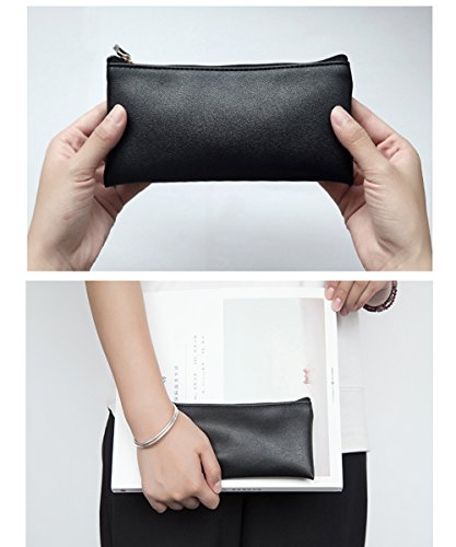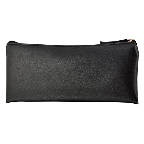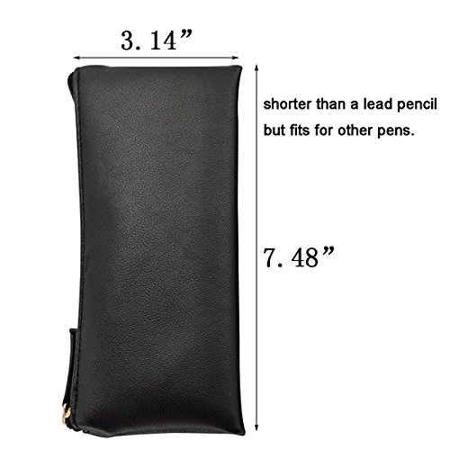 XYBAGS PU Leather Small Pencil Case Pen Bag with Zipper, PU Leather Makeup Pouch Makeup Case Cosmetic Pouch (Black)