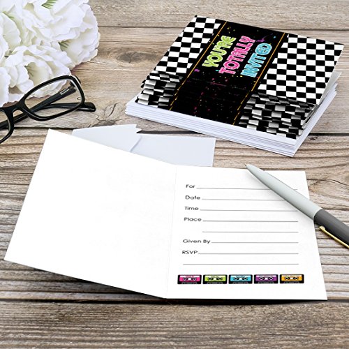 PREMIUM PARTY INVITATIONS: 80's Retro Totally 1980s Party invitations are professionally printed on heavy-duty card stock paper with a photo-like shine. They are then hand-folded and individually inspected, then carefully packaged with our exclusive squiggle flap envelopes, making this 1980s stationary set a must-have for a Totally 1980s Party.