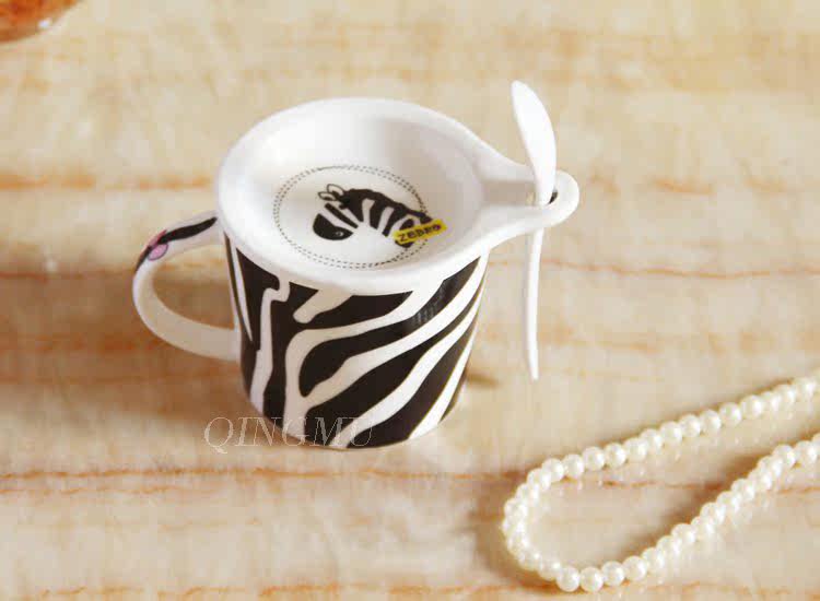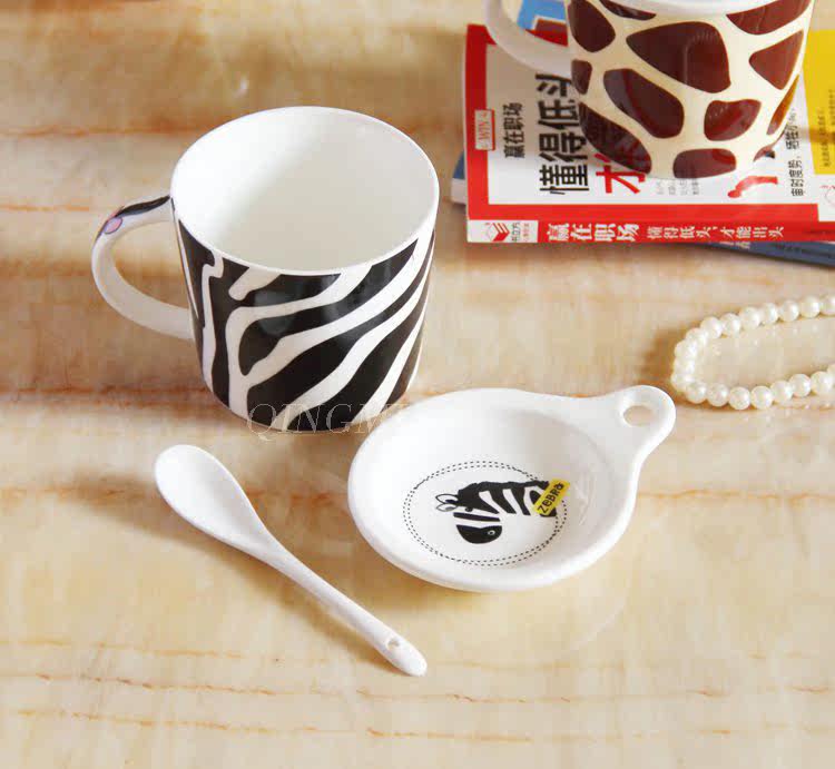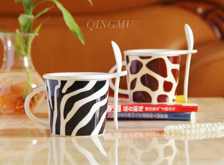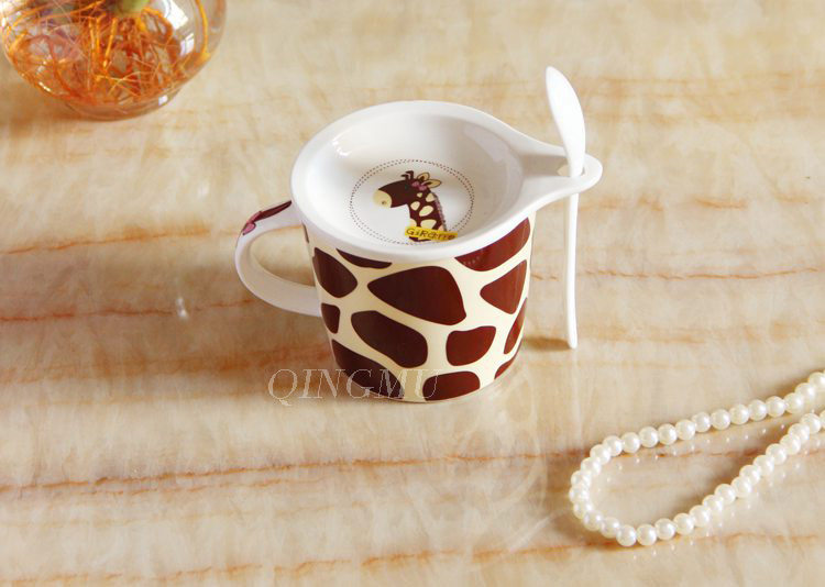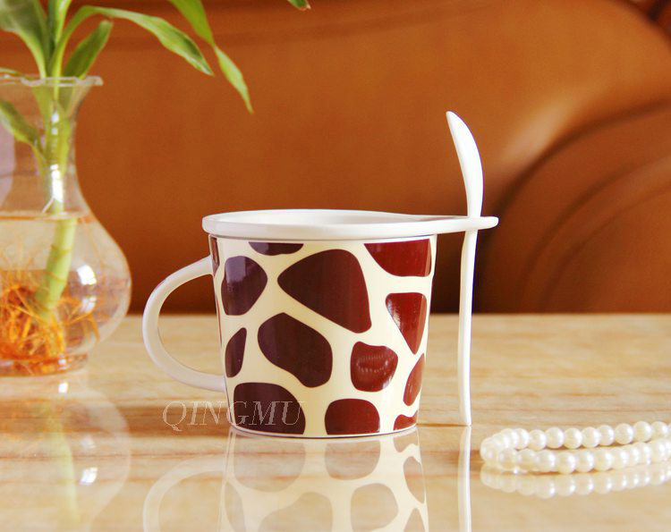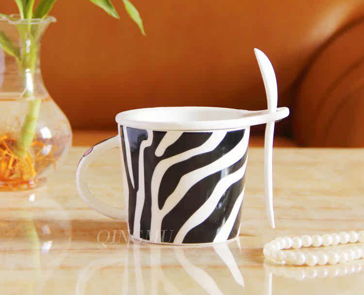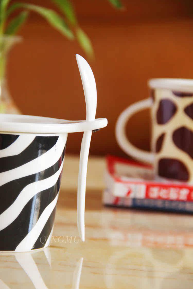 创意可爱情侣带盖陶瓷杯 咖啡牛奶杯水杯子带勺情侣对杯