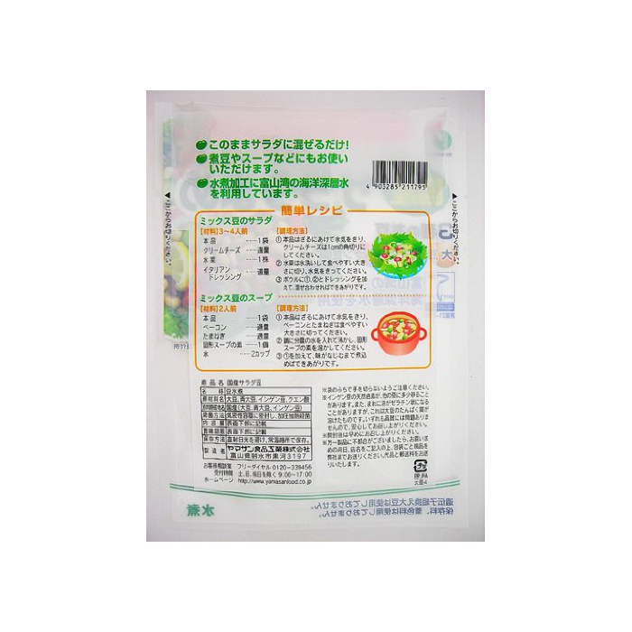 원재료:대두(토야마)고, 청대두(아키타)고, 완두콩(홋카이도)