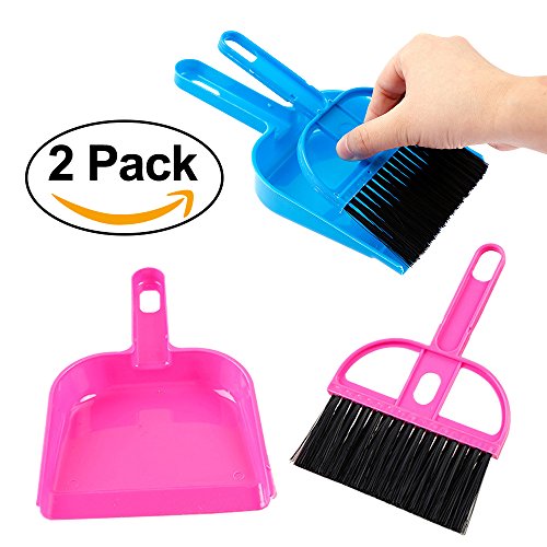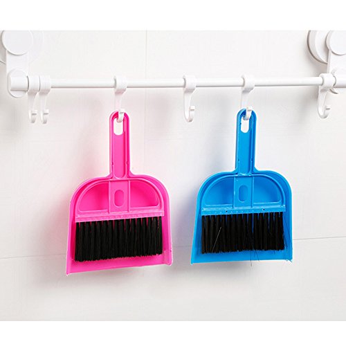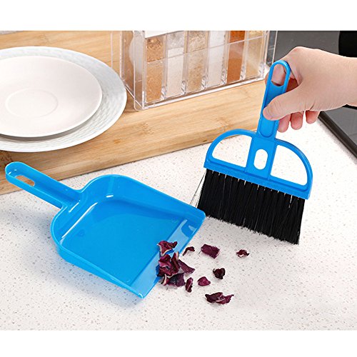 LOHOME Mini Cleaning Broom Brush and Dustpan - Set of 2 Include 2 x Broom Brush + 2 x Dustpan Desktop Sweep Cleaning Brush Dustpan Set Color Random (Blue+Pink)