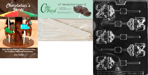 Cybrtrayd 'Flop Eared Buck Tooth Lolly' Easter Chocolate Candy Mold with 25 4.5-Inch Lollipop Sticks and Chocolatier's Guide