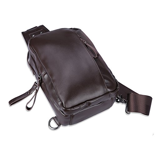 -. Title : Forestfish PU Leather Sling Bag Chest Bag Sling Backpack Daypacks for Men