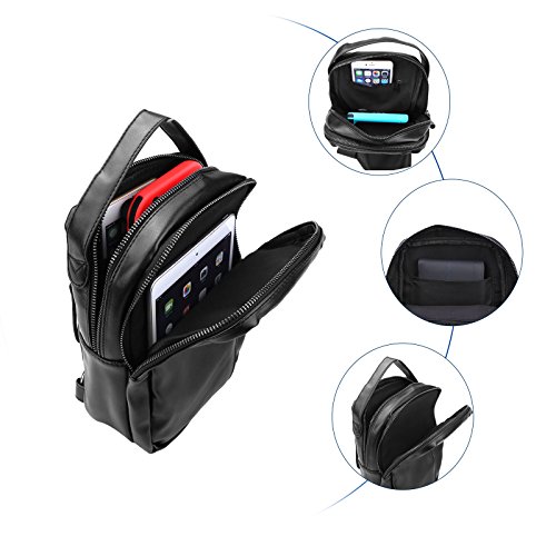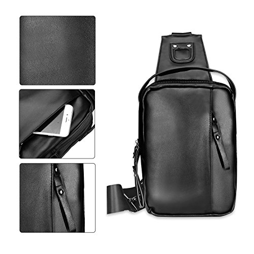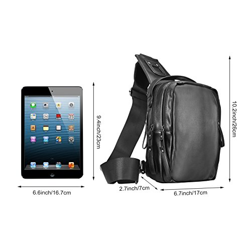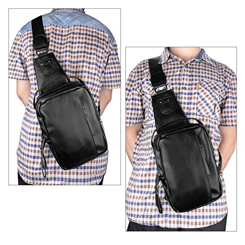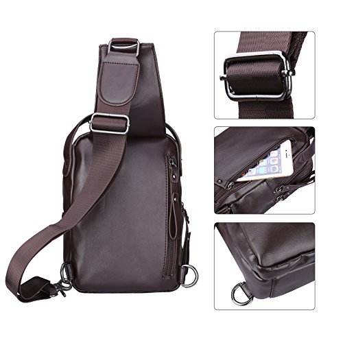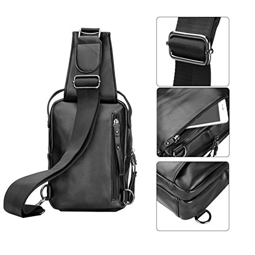 -. Feature : Lightweight Men Sling Bag:17(L)*7(W)*26(H)cm/6.7*2.7*10.2,made of high quality soft PU Leather,polyester lining and zipper.Good seam and Reinforced process make it's durable and sturdy. / Fashion Men Chest Bag: 4 zipper pockets outside,2 middle Zipper pocket,1 front Zipper pocket,1 Back Zipper pocket.2 small zippered pockets(1 front one and 1 back one). / Comfortable Men Sling Backpack:a djustable,breathable air mesh strap provide a more comfortable carrying,easy to use,practical design brings you more fashion sense and happiness all the time. / Popular Shoulder Backpack:a good size to carry your P.R.Imary items,make them very organized,safely store your smartphone,samll camera,umbrella,purse,keys, small snacks,MP3,power bank,notebook,or so on. / Best Men Casual Daypack:Perfectly works as shoulder bag,chest pack,cross body backpack,travel bag,business bag,multi-purpose bag,outdoor sports bag ( hiking, camping, climbing, running, cycling, bike riding,walking,etc)