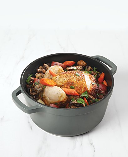 The CrockPot Edmound 5 quart dutch oven is cast aluminum with a non-stick interior for easy clean up and cooking at half the weight of cast iron. Edmound is made from cast aluminum which is regarded as the material of choice for even temperatures, controlled cooking, and durability. The non-stick coating makes for easy clean up and eliminates the need to season the pan before you use it. The beautiful gradient colors will enhance your cooking experience. Perfect for oven to table to fridge the lighter weight makes this dutch oven so versatile and perfect for your favorite recipes. This will become one of your favorite cooking vessels for years and years.Feature