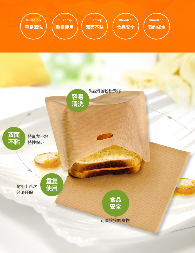 Sandwich toast bread bag made of glass fiber coated Teflon cutting, pressing.