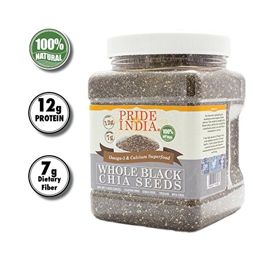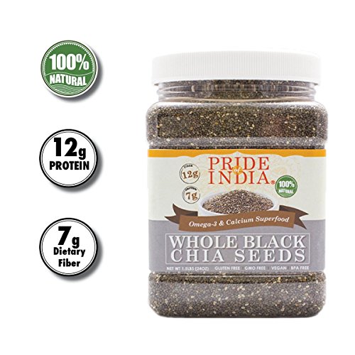Pride Of India - Whole Black Chia Seeds - Omega-3 & Calcium Superfood, 1.5 Pound Jar