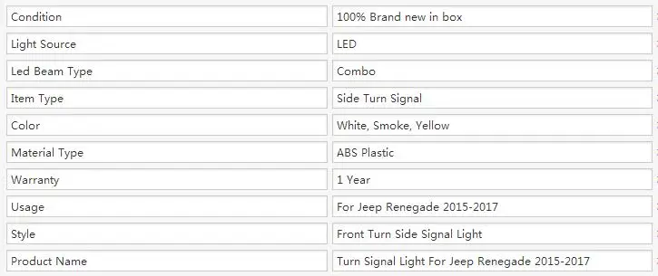 Product Name:Turn Signal Light For Jeep Renegade 2015-2017