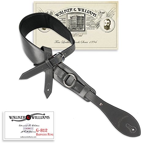 -. Title : Walker & Williams G-812 Dark Grey Leather Harness Ring Guitar Strap with Padded Glove Leather Back