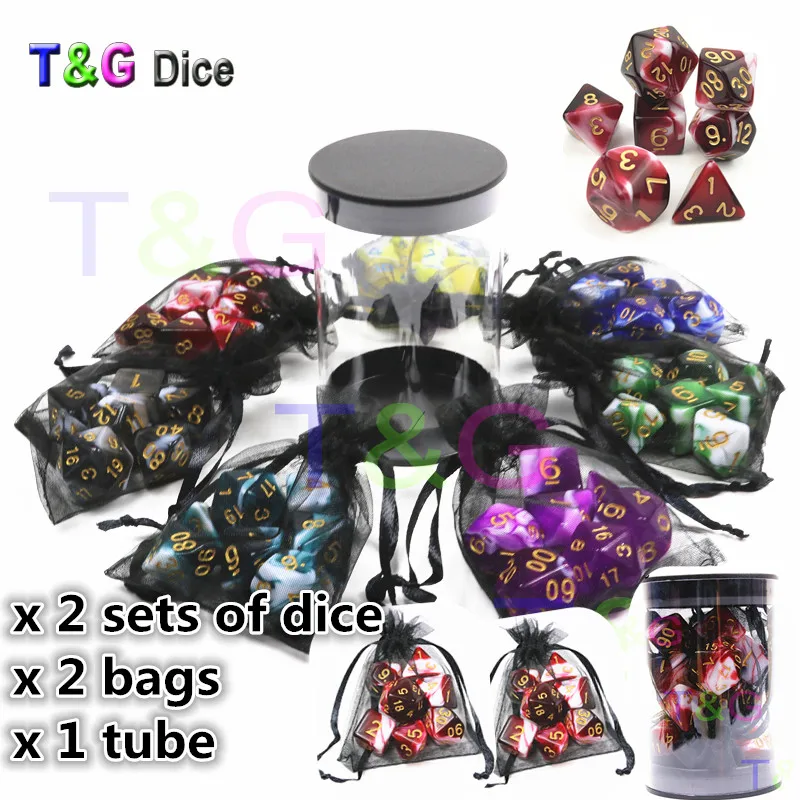 Packages Includes:2sets of Dices with dice bags and 1 piece of Tube